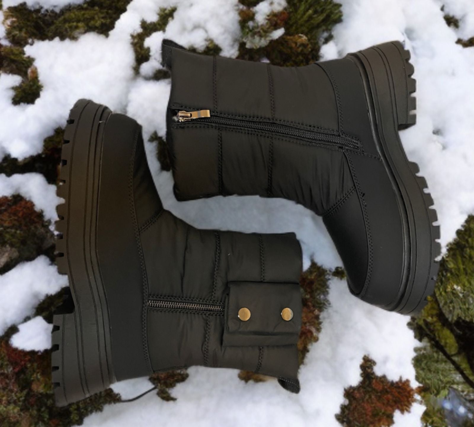 Estas elegantes botas negras combinan estilo y comodidad gracias a su interior forrado con chiporro, que mantiene tus pies cálidos en todo momento. Equipadas con un cierre completo y un broche ajustable, ofrecen un calce perfecto y seguro para que puedas usarlas todo el día con confianza. Ideal para quienes buscan un calzado práctico sin sacrificar el diseño.