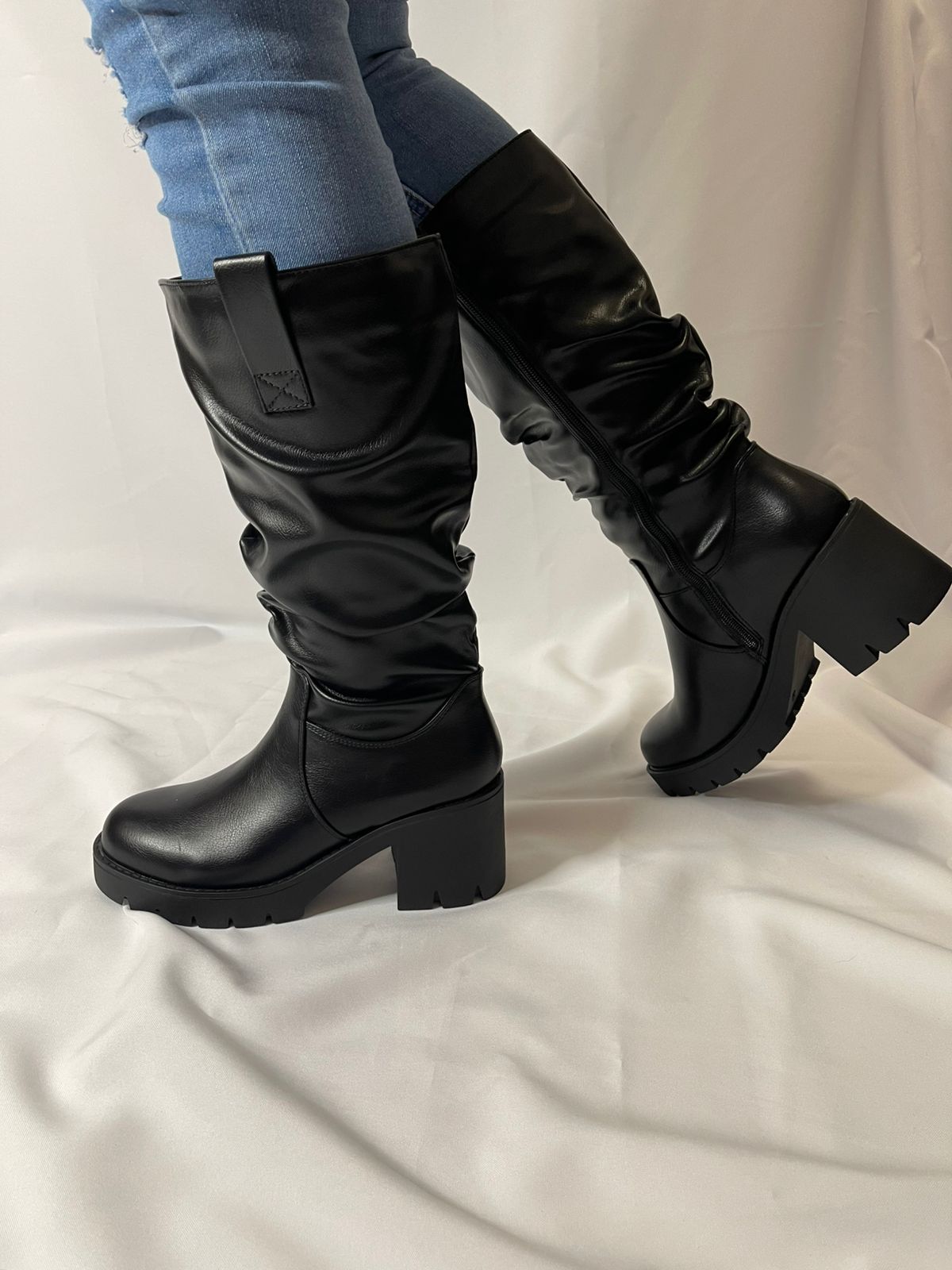 Estas botas negras, con un diseño elegante y un pequeño tacón, combinan estilo y comodidad para que las uses todo el día sin esfuerzo. Su cierre completo garantiza un ajuste seguro y práctico, haciendo que sean la elección perfecta para quienes buscan confort sin sacrificar la elegancia.