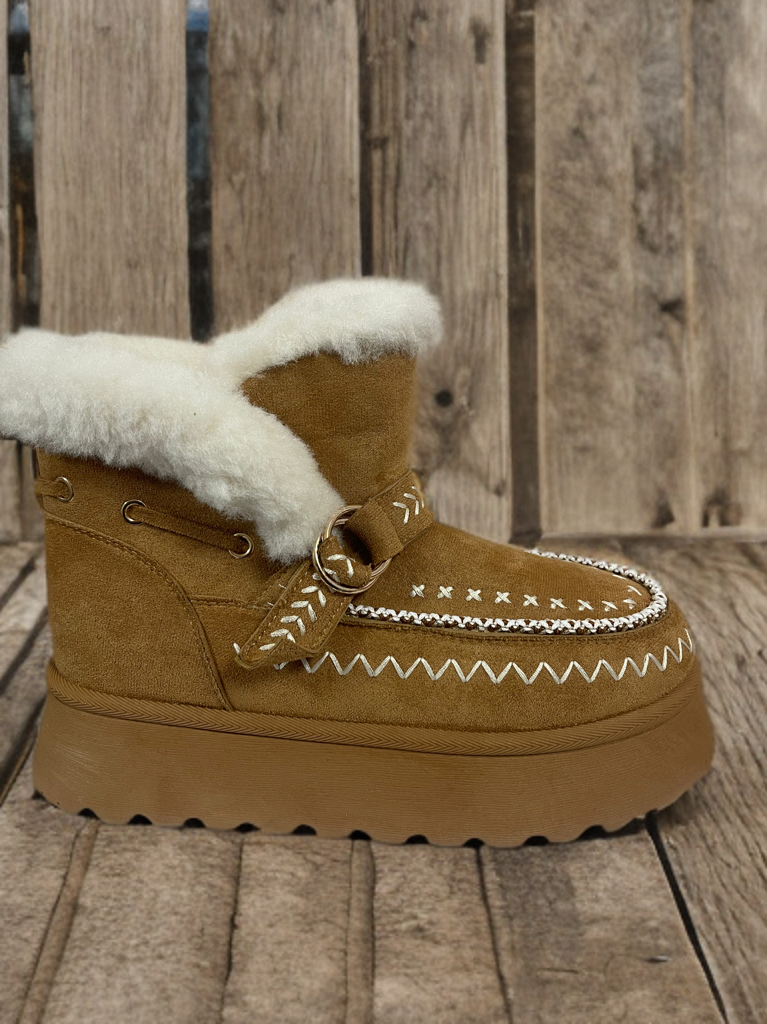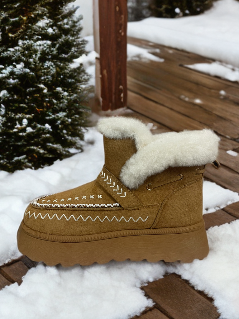 Disfruta del máximo confort con estilo. Nuestra pantubota en color café claro combina suavidad y calidez gracias a su interior forrado en chiporro, ideal para mantener tus pies abrigados en los días fríos. Su diseño se destaca por delicados detalles bordados en la parte delantera, que le aportan un toque único y artesanal. Perfectas para descansar en casa con un look acogedor y con estilo.