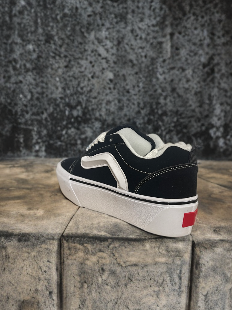 Estas zapatillas tipo Vans con plataforma de 4 cm combinan estilo y comodidad para elevar tu look diario. Su diseño clásico con un toque moderno te brinda altura extra sin sacrificar confort, perfectas para destacar en cualquier ocasión. Añade un toque único a tu outfit con estas zapatillas versátiles y a la moda.
